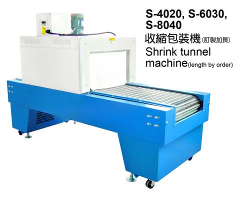 S-4020~S-8040 hot air type shrink machines for PVC, PP, and POF films.