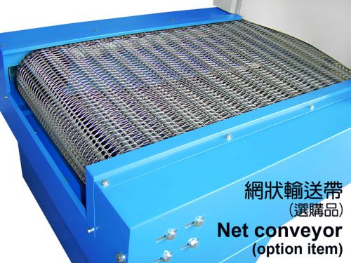 2. The conveyor for heat shrink can adopt the close-roller type or net type model, suitable for big or small products. (The net type is option item.)