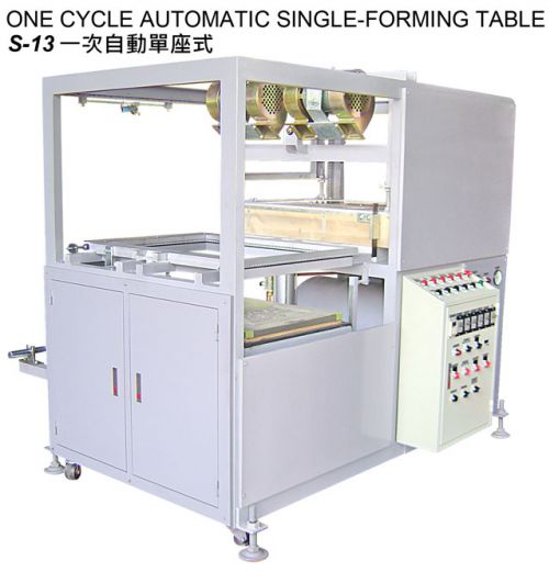 本機S-13E為單層電熱式,適用於成型各式泡殼、包裝內盒、餅乾內盒、托盤……等。