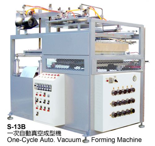 S-13B是能夠上下爐加熱皮料之機種,一般發泡板、厚板及薄板、捲料均合用,材料使用範圍較廣,一般汽車另件的成型亦多採用此機之加大型機種。